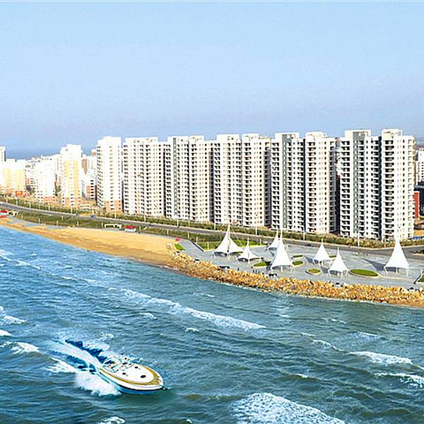 位于烟台经济技术开发区金沙滩海滨公园北部的素有“北方第一海滩”之称的万米海水浴场,沿海岸线绵延,坡缓水清,沙质细柔,夏季中午海水水温为25摄氏度左右,是我国最优良的天然海水浴场之一。这里有风和日丽,景色秀美的春天;水平浪静,海似锦缎的夏日;波涌浪翻,玉珠飞溅的秋天;激浪排空,蔚为壮观的冬季,构成了一幅四季色彩分明的美丽图画。6座沿海滨一线展开的雕塑,仿佛点睛之笔,更增添了海的韵味。
