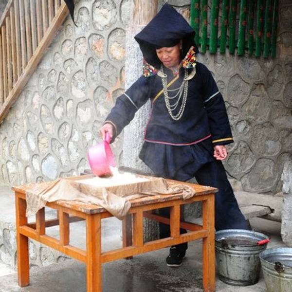 黑衣壮山寨里,家家产户都有织布机,在晒台上晾晒着用蓝靛染制的黑布,全屯散发着清郁的蓝靛香味。黑衣壮男女老少皆着用蓝靛染的黑布手工缝制的服饰。黑衣壮的蓝靛染织工艺,是中华民族仍是全人类的文化遗产。 在山寨,黑衣壮人至今仍居住在典型的干栏建筑里,用石木建成的黑衣壮干栏是一种很古老的建筑,在吞力风情山寨,可以坐在黑瓦木楼下,静静地铃听虫鸣鸟叫,享受山风的吹抚 。