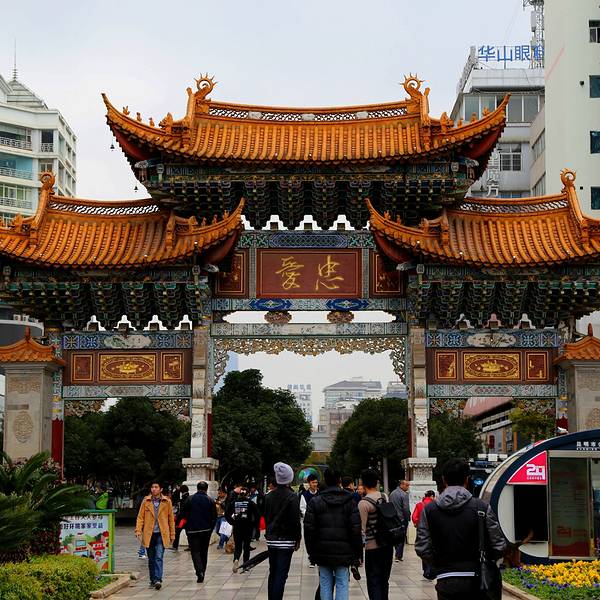 南屏步行街是昆明著名的商业步行街,街道两边都是新建的高楼大厦,现代气息浓厚,仅存的古色古香牌坊...南屏步行街是昆明著名的商业步行街,街道两边都是新建的高楼大厦,现代气息浓厚,仅存的古色古香牌坊好像在诉说这条街过去曾经的繁华。