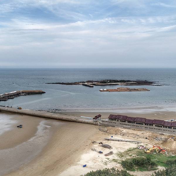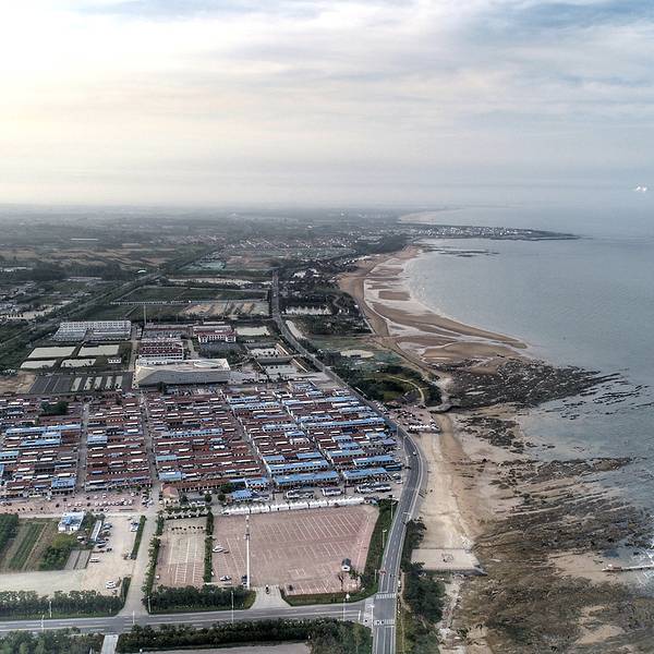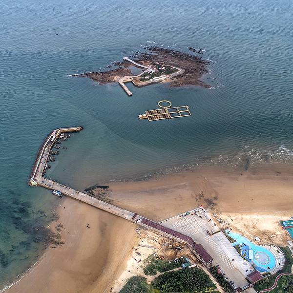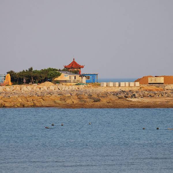 桃花岛风情园和李家台赶海园相邻,这边的海滩比较开阔,看不出两边的分界线,可能是分属于两个不同单...桃花岛风情园和李家台赶海园相邻,这边的海滩比较开阔,看不出两边的分界线,可能是分属于两个不同单位的地盘,这边有乘船出海捕鱼体验游,老远就能听到音乐声。
