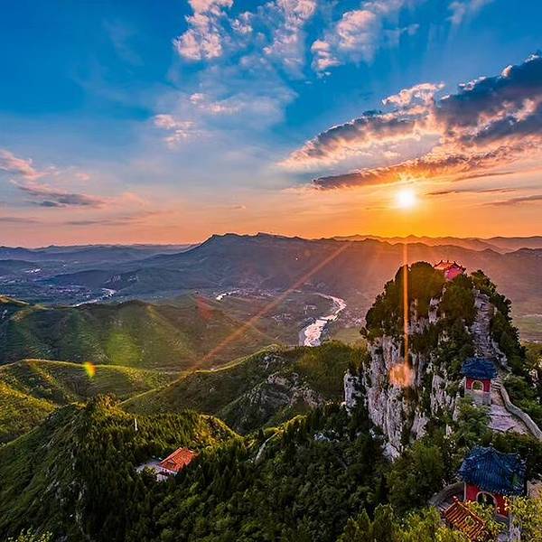 马鞍山其山山势峻峭,峰顶突兀,自然景观壮丽多姿,俯瞰是蜿蜒秀丽的淄河水、波光粼粼的太河水库,水天一色