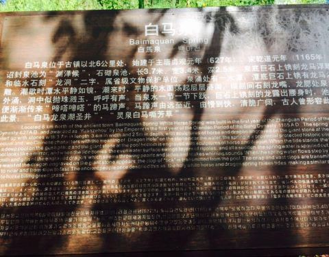 适合对历史古迹感兴趣的朋友前往,白马泉始建于主唐贞观元年(627年)宋乾道元年(1165年)诏...适合对历史古迹感兴趣的朋友前往,白马泉始建于主唐贞观元年(627年),宋乾道元年(1165年)诏封泉池为“渊泽候”,石砌泉池,长3.7米、宽3.4米、深2.5米,泉底巨石上镌刻龙马浮雕和临水石刻“龙洞”二字。