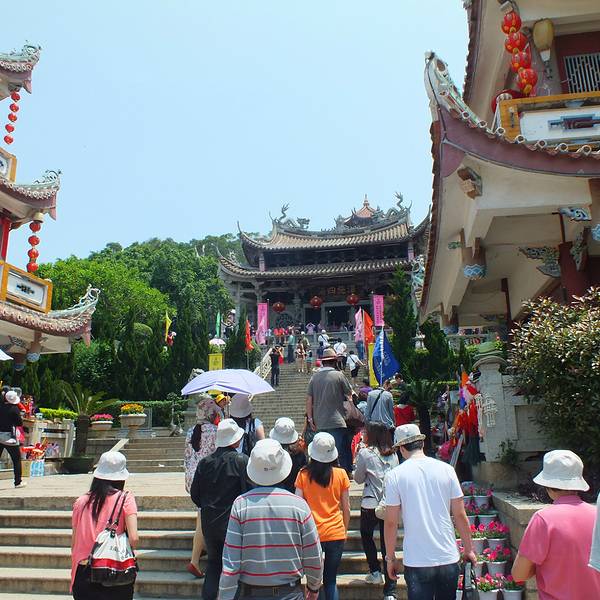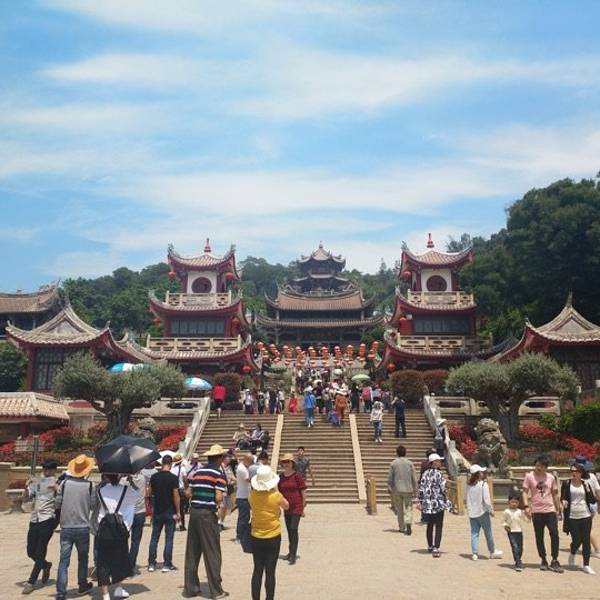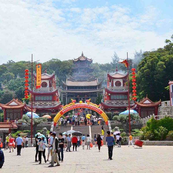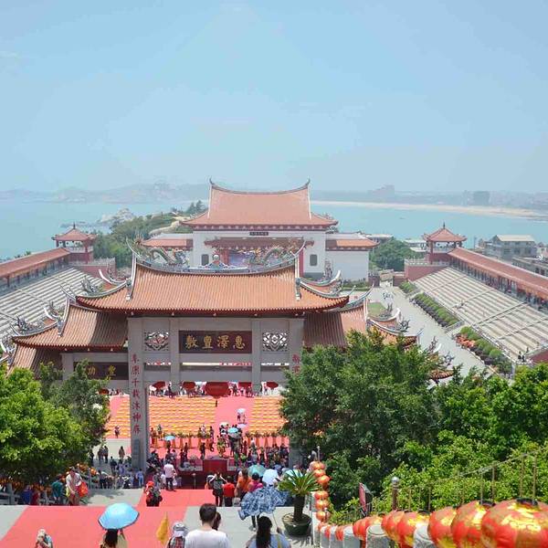 湄洲岛坐落于莆田市南部,是一座南北纵向狭长的小岛。湄洲岛是妈祖文化的发源地,岛上坐落着雄伟的妈祖祖庙,一直以来都是沿海信众的朝拜之地,有“东方麦加”的美誉。岛上景色优美,有随处可见到奇特巨石的地质景观,以及宽阔细软的沙滩,是度假旅游胜地。从莆田市区可以坐公交车到文甲码头,再乘渡轮上岛。湄洲岛不算大,只要早点去、合理安排游览时间,就可以一日游完主要景点。岛上有妈祖祖庙、妈祖文化园、鹅尾神石园、黄金沙滩、妈祖影视城等景点,乘坐岛内公交都可以到达,很方便。当然,也可以在岛上住一两晚,好好享受这里的阳光和沙滩,或者租辆自行车环岛骑行,细细品味这里的风土与美景。湄洲妈祖祖庙是世界上五千多座妈祖庙的祖庙。祖庙主要包括天后宫、朝天阁、钟鼓楼等仿宋建筑,每天都有很多信徒来此进香祈愿,因此香火十分旺盛。妈祖文化园紧邻着祖庙,文化园是收费景点,里面的山顶坐落着14米高的巨型妈祖石雕塑像,园内还有石刻群和新建的庞大庙宇群,若是坐船从海上远观这些建筑,颇有“海上布达拉宫”的感觉,十分宏伟。鹅尾神石园是岛上的另一大主要景点,位于岛的南端,在这里你可以行走在海边的山脊上登高望海,或者穿行于千姿百态的怪石群之间。神石园的游览时间约为2小时,园内大多为山路石阶,行走时需注意安全,建议随身多带点水、并注意防晒。作为著名海岛,湄洲岛上自然少不了多片海滩,包括岛屿北部的牛头尾沙滩、中部的莲池澳沙滩、南部的鹅尾山沙滩等。但知名的莫过于岛西南端的黄金沙滩,这片延绵三公里的海滩滩平坡缓、沙质细软,是赶海、玩沙、游泳的胜地。每当清晨或黄昏时来此,可见海面被阳光照得金光粼粼,十分迷人。