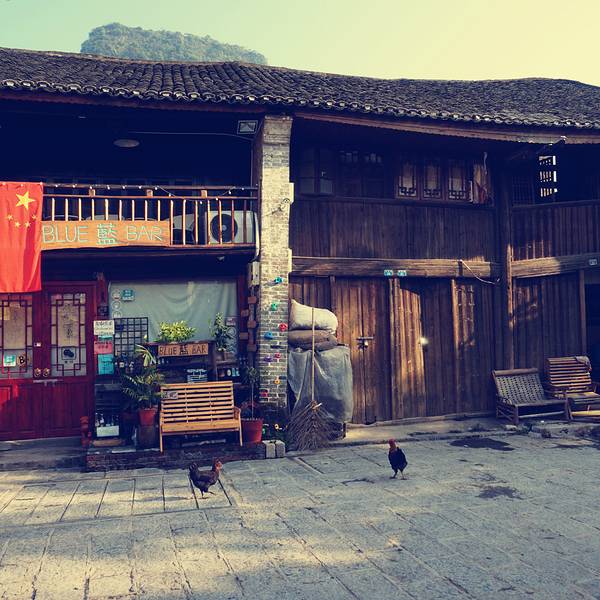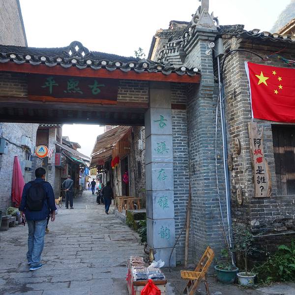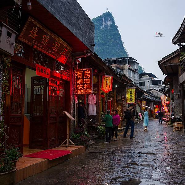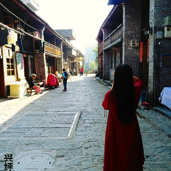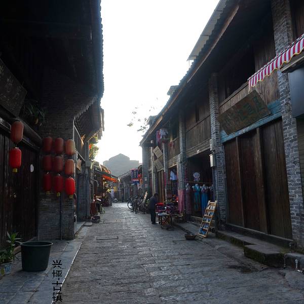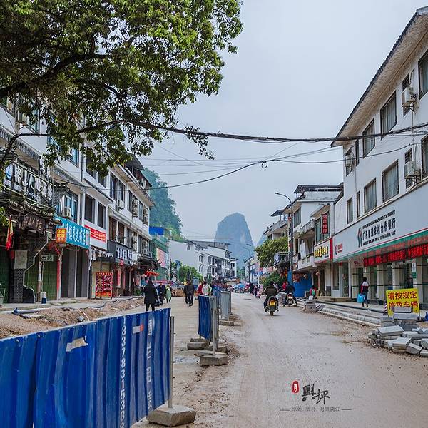 兴坪汽车站一出门往右走,就可以步行在古街里了。兴坪汽车站也有到阳朔县城的班车,10块钱,四十分钟可以到阳朔县城内。