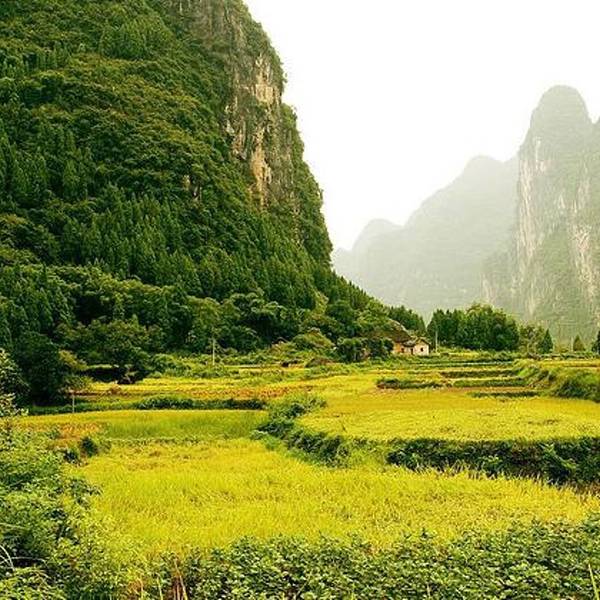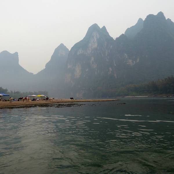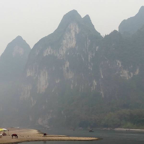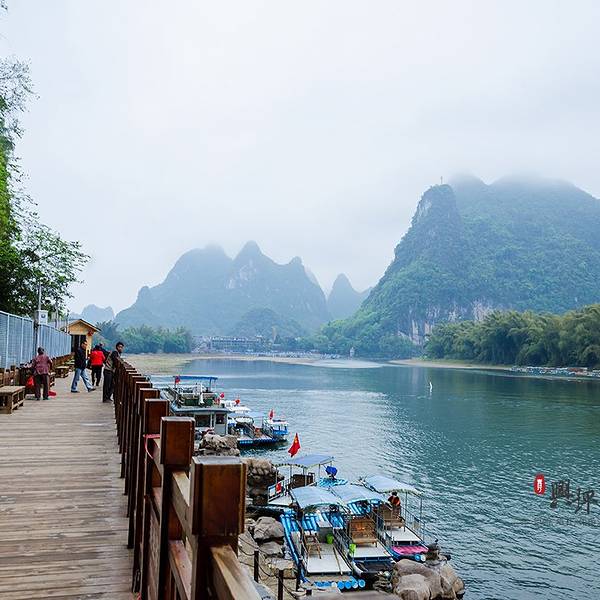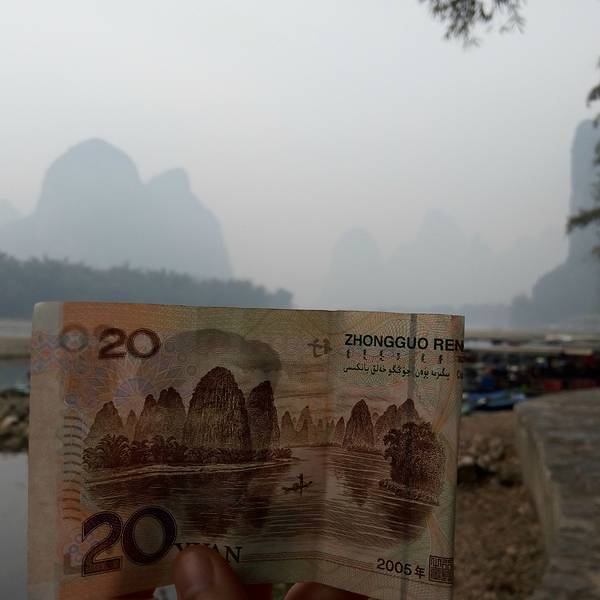 途中会看到20元人民币的背景(黄布倒影)到达兴坪是下雨天,远处的山峰在雾气的笼罩下若隐若现,又是另一番漂亮的景致,心情也豁然开朗起来,丝毫不受天气影响。