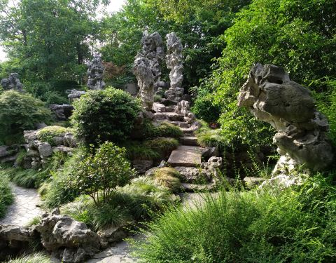 苏州五峰园,位于阊门内泰伯庙东北,很隐蔽。是一处始建于明嘉靖年间的古典园林,宅部已无存。全园以五峰胜,居中的一峰太湖石品相最好。假山叠石水平高超,有峭壁、峡谷、山洞、石桥、古树、石舫、凉亭等。山前...