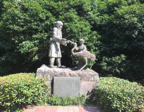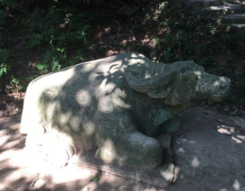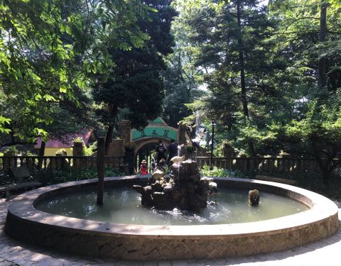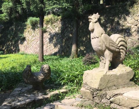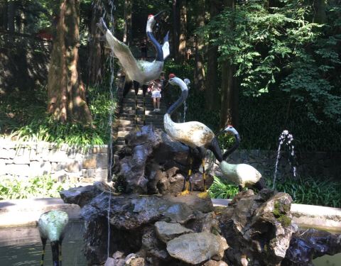 公园里的十二生肖石雕很形象、很可爱,找到自己的生肖合个影公园里的十二生肖石雕很形象、很可爱,找到自己的生肖合个影。这里就是清凉世界,据说整个莫干山的泉水只有这里的鹤啄泉的泉水可以直饮,开山老祖的雕像在这里。
