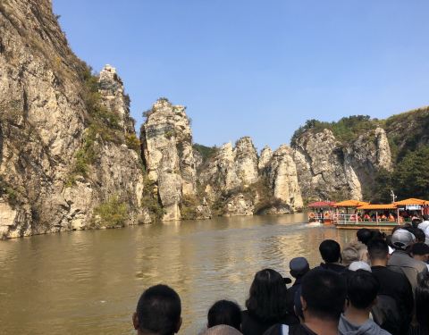 这些是必须买的,也是游览景区一定乘坐的。 游览时间4小时,跋山涉水较多,不建议带老人小孩游览龙潭大峡谷景区距离市区特别远,建议自驾游。景区有两个停车场,分别在入口和出口处,两个口的距离略远,所以景区特别准备了观光车10元一位。售票处只售套票,其他景点在园区内购买。套票是¥83/人,包括:门票50...龙潭大峡谷景区距离市区特别远,建议自驾游。景区有两个停车场,分别在入口和出口处,两个口的距离略远,所以景区特别准备了观光车10元一位。售票处只售套票,其他景点在园区内购买。套票是¥83/人,包括:门票50,石林船票15,龙潭船票15,保险3元。这些是必须买的,也是游览景区一定乘坐的。像学生证这样的半价票只能是门票半价25元,船票没有优惠。 路线:从山门进入,步行到图3位置的十字路口,向右(鹰窝峰方向)走。因为最后还会回到这个地方,如果去龙潭峡就出园了。鹰窝峰去的人比较少,有一个很高的铁桥。沿石阶向上到石林景区,这里有二号坝游船,带你看看四周的山水,坐的人比较少。然后排队坐套票上的第一个船 石林游船。这段行驶距离是最长的,到石林峡下船。向上爬山到玻璃栈桥,该景点是单独收费,¥50/人,没有半价优惠。不想上桥的可以沿着桥边的石阶步行下山,回到排队坐石林游船的地方。过了玻璃栈桥是滑道,¥25/人,没有半价优惠。凭票领取护臀裤,防滑手套,排队进入滑道。然后回到图3位置,向右(龙潭峡方向)爬山。最后坐龙潭游船到龙潭瀑布,步行上山回到出口。 游览时间4小时,跋山涉水较多,不建议带老人小孩游览。景区还在修建中,龙潭大峡谷博物馆之类的还未开放,相信以后会更好。 展开
