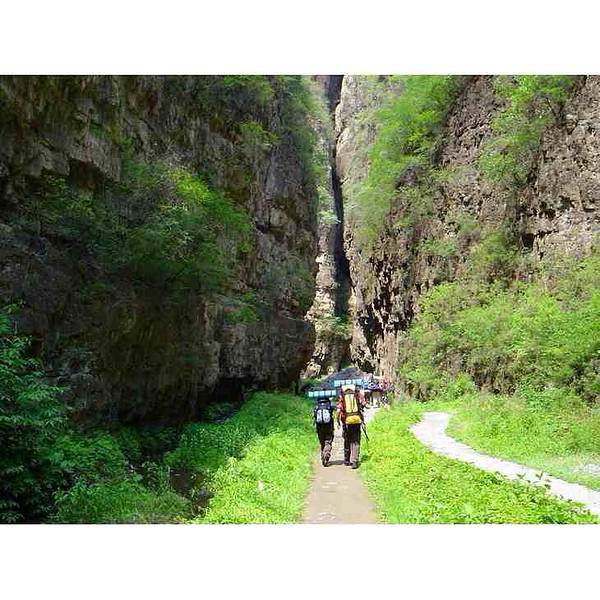 非常值得去的地方,类似南石洋大峡谷地貌,峡谷深处行走,3公里左右,没有爬山,合适老人小孩玩,山谷里非常凉爽,比外面低4-5度,沿着小溪一路走,山泉水,冻脚,溪流水量丰富。上午去的京西十八潭,太失望了,那个也叫谭,水坑都不是,加起来还没我们小区里的水坑大,也叫谭,晕。还好下午去了龙门涧,弥补了今天的失落。