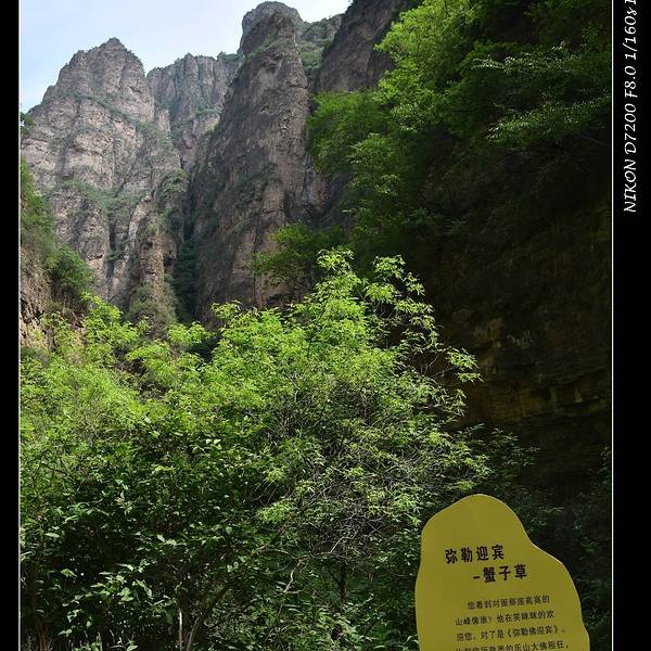 顺着峡谷往深处走,越来越多的景点你肯定不会错过,毕竟就这一条路,“小胡同赶猪--直来直去”。有些名称比较形象,有些名字起的有点牵强,我怎么看也没看出来, 比如 “ 弥勒 迎宾”,我就没瞅出来。其他的什么“一线天”“落凤坡”“千尺屏”等等还都是有典故的。