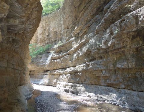 一般山泉流水,到雨季水会很大,山间很清凉,及时外边大大的太阳,山间都不见,只有山缝中间照进来,很美丽