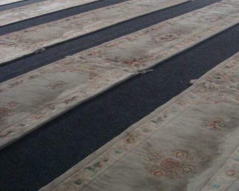清真寺大门北向,为拱形花格铁门,正门上的1343是该寺于1925年翻建时的伊历年份。寺内庭院 不是礼拜日,寺内很冷清,也没有什么人来参观。这天不是礼拜日,大殿内没有人。 整个大殿地上都铺着地毯,进去都必须脱鞋。