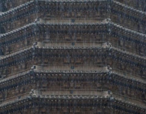 觉山寺位于大同市灵丘县,始建于北魏太和七年(公元483年),整座寺院精巧玲拢,保存完整。寺内的辽代觉山寺塔建于公元1090年,为密檐空心塔,平面八角形,是目前国内保存最为完好、具有代表性的一座辽代砖塔。塔内四壁存有精美的壁画。塔座四周,有砖雕歌舞伎,舞姿优美,生动感人;砖雕武士形象威武雄健,栩栩如生,为辽代雕刻艺术中的珍品。