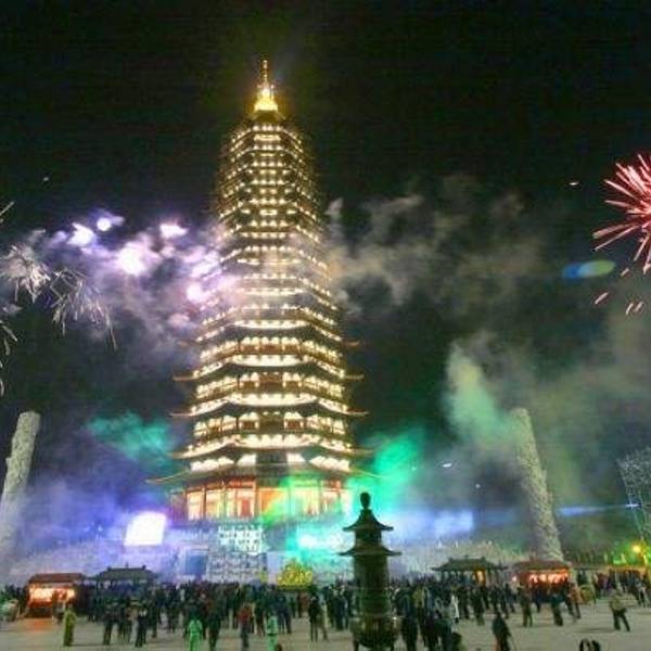 历史上曾经记载,春节时皇帝会率领百官到天守寺燃灯供佛,祈求一年风调雨顺、国泰民安。每月初八点燃三百大十盏灯。百姓聚众观灯,祈祷吉样。全塔共悬挂风铃三千四百个,风作时铃齐鸣,仿佛编钟悠远流长。有古诗为证:灯明三百六十点,最好天守云外塔。风撼二千四百铃,恨无梯级上青冥。