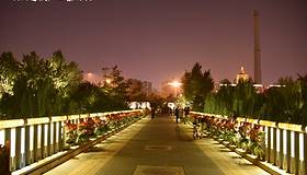 桥上,灯光,花朵,行走的人们……