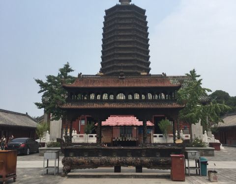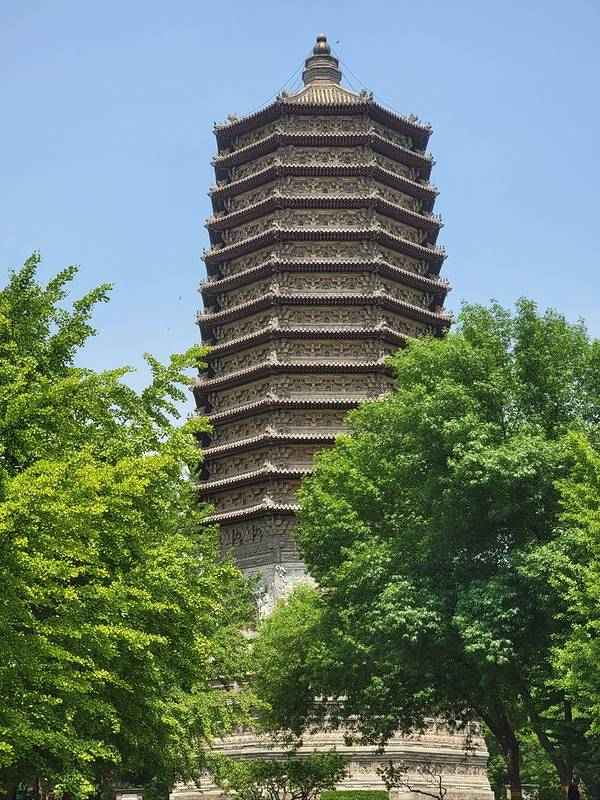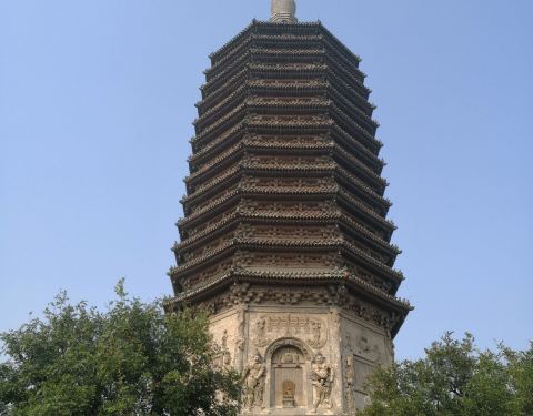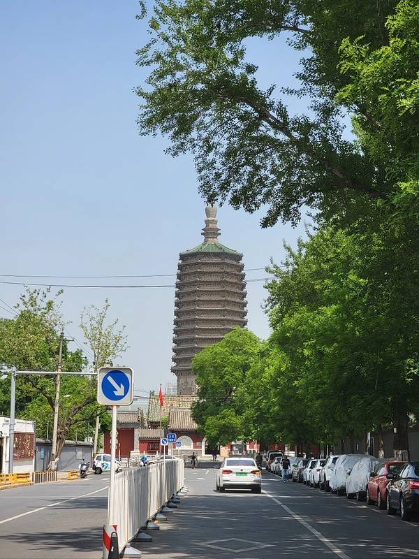 现存北京地表⚠️最古老⚠️建筑,位于北京市西城区。始建于辽天庆九年(1119年),建成年代为辽天庆十年(1120年)。此塔初名大辽燕京天王寺合利塔,建筑师是寇世英,、寇世兴。塔为八角十三层密檐式实心砖塔,塔身高57.8米。明永乐元年 (1403年)明成祖朱棣下令修缮天王寺塔,依辽代原状更换含利塔基座砖雕,塔整体仍保持辽代风格。
