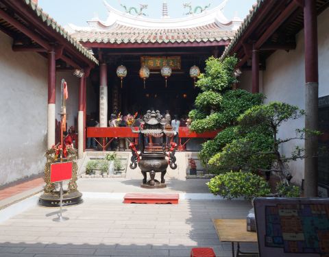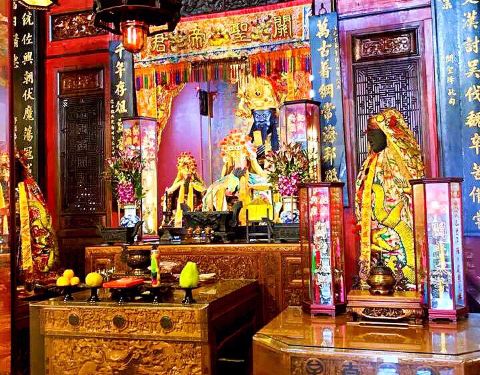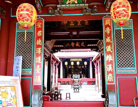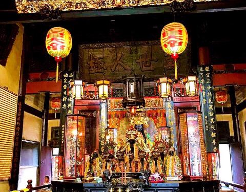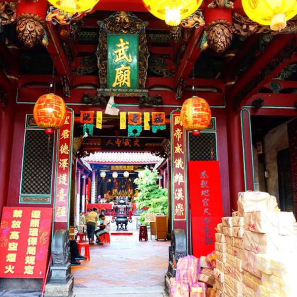 祀典武庙就在赤崁楼正对面的巷子里,虽然主祭的是关公,但是里面几乎什么都可以求祀典武庙就在赤崁楼正对面的巷子里,虽然主祭的是关公,但是里面几乎什么都可以求。既有观音可求子、也有月老可求姻缘,反倒是关公还比较轻闲了