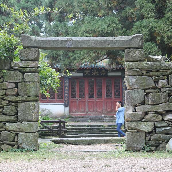 ...池寺,现已废,原寺前呈长方形的水池,仍碧水悠悠,光灵如玉,现存之台为石木水泥混合结构,上有平台此处原建有天池寺,现已废,原寺前呈长方形的水池,仍碧水悠悠,光灵如玉,现存之台为石木水泥混合结构,上有平台。登台眺望,山峦突起,群峰相连,极富野趣。