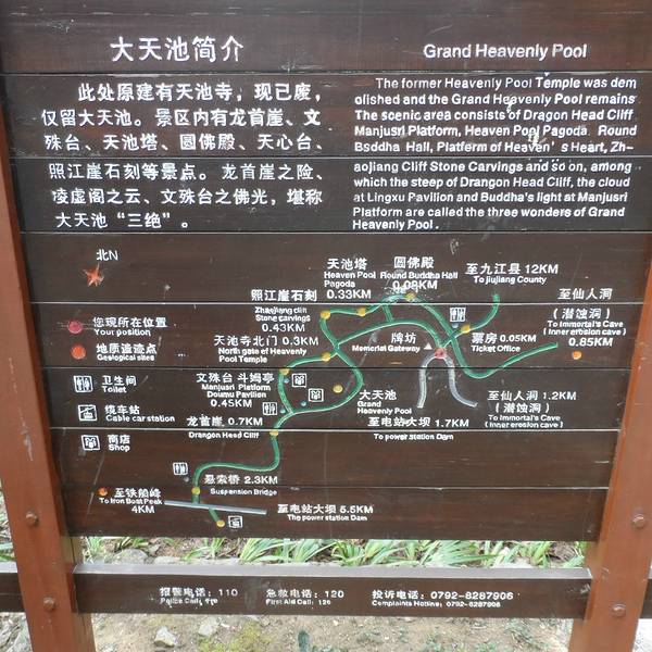 实用 神奇在无论干旱还是雨水充沛,这里常年保持一个样,不会干涸也不会满溢,细看还有重石缝中慢慢渗出的...大天池,看着名字很大气,但是景点却很坑,大家可以乘坐旅游观光车到大天池站,观光车票面值80大洋,7天有效期,有效期内随意乘坐,还有一种150块,就是1个月有效了,更适合长住的游客。不过可能这站人少,从这里...大天池,看着名字很大气,但是景点却很坑,大家可以乘坐旅游观光车到大天池站,观光车票面值80大洋,7天有效期,有效期内随意乘坐,还有一种150块,就是1个月有效了,更适合长住的游客。不过可能这站人少,从这里坐车前往其他景点就要打车站门上的电话叫车过来了。大天池的验票口、工作人员都还在,但是自从庐山统一票价后,这里就不再单独收取门票,门票已经包含在庐山180元的大门票里,虽然有工作人员但也不会再验票,初见大天池会有些愕然,因为这仅是两个10平方左右的水池,据说是菩萨见这里大旱于是伸手一插,就出来了,神奇在无论干旱还是雨水充沛,这里常年保持一个样,不会干涸也不会满溢,细看还有重石缝中慢慢渗出的清泉,除了大天池,附近还有文殊台、龙首崖、天池塔、圆佛殿、天心台,照江崖石刻等,最推荐龙首崖,很惊险,这里还有个猴谷,请保管好自己的财物特别是夏天的时候,猴子经常出没。这里没有用餐的地方,景区内只有一个卖庐山云雾茶的茶室,10块钱一杯茶,20块钱一盒茶叶,喜欢茶的朋友可以试试,不知道是不是真的云雾茶,但是附近都可以看到很多茶树。整个大天池景区可以游览2小时左右,体力好的可以继续步行前往悬索桥之后再去电站大坝坐车,如果不想走太远可以原路返回到大天池入口处乘坐旅游观光车到下一站电站大坝站,在电站大坝站可以用餐,之后再从电站大坝参观乌龙潭、黄龙潭或坐缆车去铁索桥。 展开