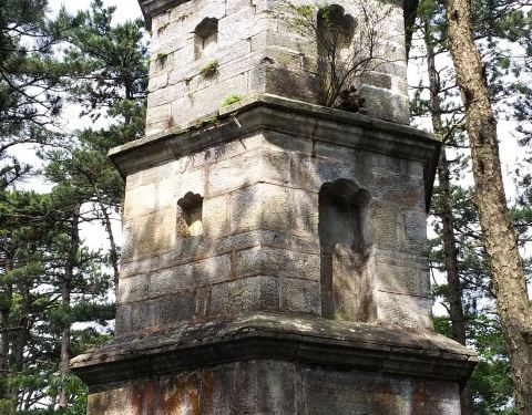 ...池寺,现已废,原寺前呈长方形的水池,仍碧水悠悠,光灵如玉,现存之台为石木水泥混合结构,上有平台