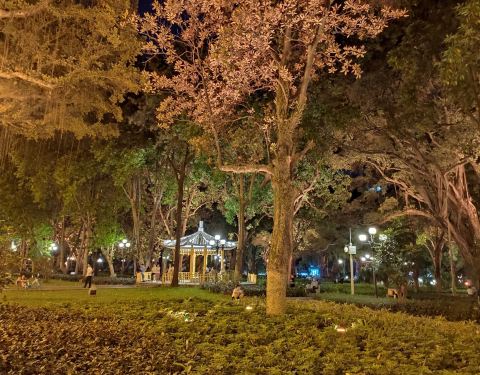公园里布满参天大树,绿树成荫非常阴凉。老人家喜欢在这里休闲,合唱,锻炼人民公园又叫中央公园,是广州第一个公众公园,也是广州中心点的所在。公园里布满参天大树,绿树成荫非常阴凉。老人家喜欢在这里休闲,合唱,锻炼。