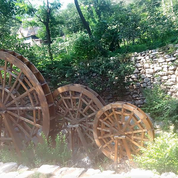 村子里还有一些在农家院开的小餐馆,农家乐吧。当时我们去的时候有一段道路在施工,我们以为到了尽头。据之前去的舍友们说,上面还有一些很古朴的建筑,那个拼图便是。