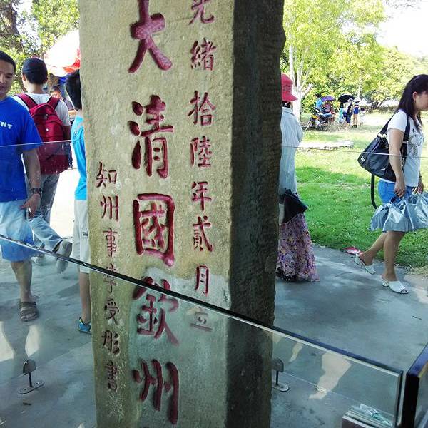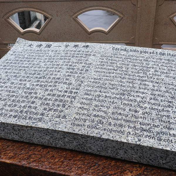 大清国一号界碑位于北伦河口的竹山港,这块因长年日晒雨淋而益显沧桑的巨石,就以这样崛强的方式屹立着,界碑上庄严雄浑的“大清国钦州界”几个大楷透着一股不可侵犯的凛然正气,向每一个游客诉说着100多年来的每一段历史。 1885年6月9日,清政府和法国在天津签定的《中法越南条约》,条约规定,两国边界自竹山起界,循北伦河自东向西,以河心为界线。防城港市与越南的边界线,从竹山的北伦河口至峒中的北岗隘,长200多公里,全段以石碑为标致,共立1至33号界碑。其中以河为界的,双方各于已方河岸相对立石,以山为界的则双方共立一块界碑,一面书“大清国钦州界”(当时防城属钦州府辖),一面书“大南”(即越南)。