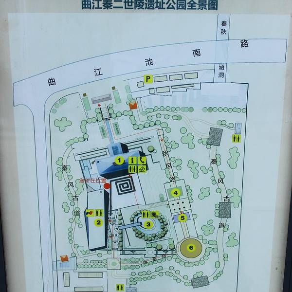 1.离曲江池很近,挺好找的,周围都是小区,很安静。 2.遗址本身免费的,里面有个博物馆收费,分为秦殇(秦兴衰的历史)和曲江新区建设过程中发现的文物展,蹭着解说看完了,很涨姿势,个人觉得还是值得一去,全价票20也不贵。 3.最佳参观时节应该是10-11月,满园的银杏很漂亮,霜叶也红了,单单是来看银杏林都是个不错的去处了。同时这秋色的寂凉萧瑟和遗址主题十分契和,更突出了秦殇和覆舟之鉴。 4.胡亥墓不大,从封土即可看出和他老爹差五六档,毕竟只是社会我赵哥的傀儡,没啥成就也没啥地位,以黔首之礼(老百姓地位)草草埋藏。 5.经过本人数次折反跑的惨痛教训,强烈建议游览顺序为下图。