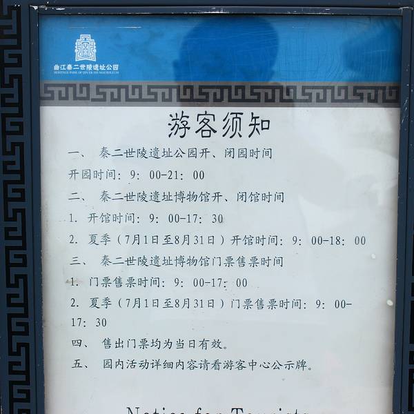 这个景点准确的来说叫秦二世陵遗址公园【门票】遗址大门免费进入,秦殇展览馆和曲江新出土文物精品展馆需要门票,全价20元,半价10元。【开放时间】公园开放时间为9:00——21:00,博物馆开放时间为9:00——18:00(提前一个小时停止售票,7月1日-8月31日提前半小时停止售票)。【优惠政策】持锦绣江山年票陕西版或华北版免费,6周岁或1.2米以下儿童免费,65周岁以上老人免费,6-18周岁未成年人及全日制本科及以下学历学生半价。【交通】224路、224路延点区间、715路、504路在曲江池公交站下车即到,西安同名站很多,不要坐错车,如果从曲江池过来的话,可以从阅江楼正对面的地下通道过来,绝对最佳路线。【注意事项】去的时候自己带水和干粮,里面除了售票员、保安都没有看到其他人,买吃的都买不到。【建议游玩时间】1-3小时,博物馆展品很少,陵墓的封土也很小,陵墓前有几座扇门,有点简单的陈设。【最佳旅游季节】博物馆四季皆宜,公园春、夏、秋季。【住宿】可以住曲江池附近的骐美商务酒店酒店,不到300元含早,去曲江池、大唐芙蓉园都很方便。【亮点推荐】秦二世是一个比较容易引起人民深思的人物,小众景点,人非常少,可以在博物馆里面静静的思考。