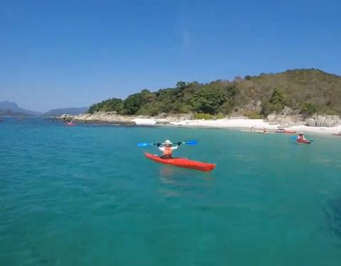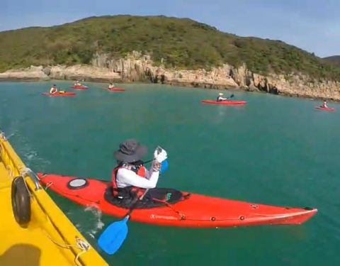 在万宜水库的终点,也就是东坝,有个斜坡下去。在海边有一小块石头从山体分裂出来,单独落入海中,那就是破边洲。在破边洲的山脚处,有两个海蚀洞,那是常年海水冲刷的结果,也是香港地质公园的一个组成部分,奇特的自然景观。