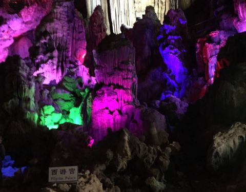 属于石灰岩溶洞,洞内钟乳悬积、石笋林立,至于那些景观也是你想像是什么它就像什么。不知道攻略上面的“五公里”是怎么计算出来的。从乐昌城中心过来差不多有十公里。