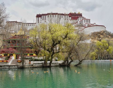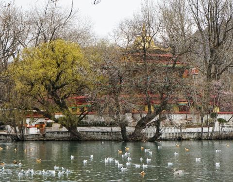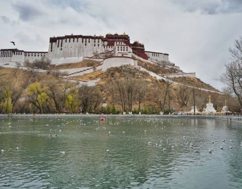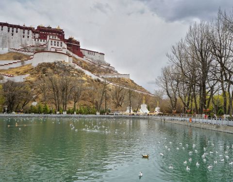 ...人如织,公园的湖里面有很多的水鸟(问了保安业不知道是什么品种)藏民带了青稞喂水鸟,特别繁盛热闹宗角禄康公园在布达拉宫的正后面,是布达拉宫的后花园,有一片十七世纪重修布达拉宫时挖出的人工湖,水清林幽。拍布达拉宫的倒影,就是在这个地方。水潭里不知道是什么鸟,在觅食嬉戏。候鸟的乐园。相比罗布林卡...宗角禄康公园在布达拉宫的正后面,是布达拉宫的后花园,有一片十七世纪重修布达拉宫时挖出的人工湖,水清林幽。拍布达拉宫的倒影,就是在这个地方。水潭里不知道是什么鸟,在觅食嬉戏。候鸟的乐园。相比罗布林卡这个季节的冷清,宗角禄康公园就热闹的多了,游人如织,公园的湖里面有很多的水鸟(问了保安业不知道是什么品种),藏民带了青稞喂水鸟,特别繁盛热闹。