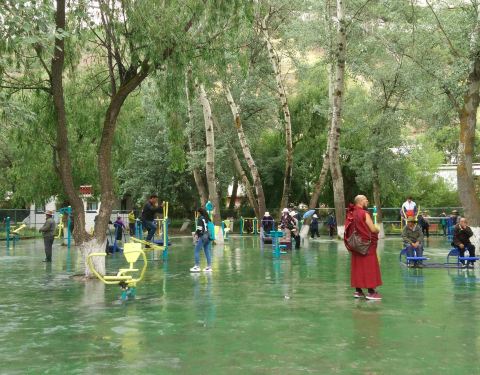 #逸香兔在异乡# 宗角禄康公园位于雄伟的布达拉宫背面。免费#逸香兔在异乡# 宗角禄康公园位于雄伟的布达拉宫背面。免费。 公园中间有一片很大的湖,成群的水禽自由自在的在水面上游泳。湖周围植被丰富,树林中开辟出各种活动区域,运动场的各种器材居然跟北京的小区里没什...#逸香兔在异乡# 宗角禄康公园位于雄伟的布达拉宫背面。免费。 公园中间有一片很大的湖,成群的水禽自由自在的在水面上游泳。湖周围植被丰富,树林中开辟出各种活动区域,运动场的各种器材居然跟北京的小区里没什么区别[调皮]。尖顶遮阳棚下是当地居民载歌载舞的快乐营地,藏族同胞们假期多又能歌善舞,每次来都能欣赏到民族歌舞[胜利]。 展开