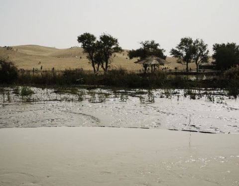 ...嗯,水呢看上去不是很多,但想一想能从这么大蒸发量的沙漠中流过,流经开这么多地方已经算很了不起了这边地处这个塔克拉玛干沙漠中间,嗯,水呢看上去不是很多,但想一想能从这么大蒸发量的沙漠中流过,流经开这么多地方已经算很了不起了。