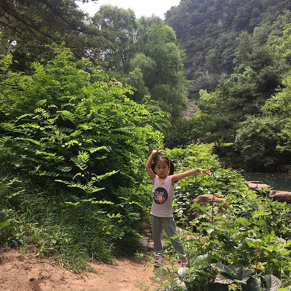 ...我家小公举抱着,不花钱^_^炎炎夏日,谷内却很凉爽,非常适合游玩,上边为路,下边为溪水,水很凉
