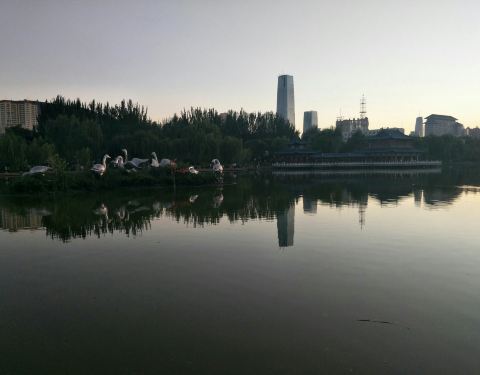 雁滩公园位于兰州南滨河东路上,其北部临近黄河边的体育公园雁滩公园位于兰州南滨河东路上,其北部临近黄河边的体育公园。雁滩公园是由黄河的一条小支流改成的,所以呈现为长条形河状,有一些亲水平台,感觉上还是蛮可以的。