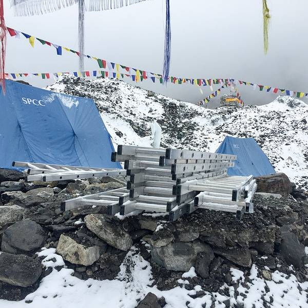 冰川医生们是非常受人们尊敬的,每个登山公司都会与SPCC营地的工作人员建立良好的合作关系,因为...在EBC大本营中心位置,便是SPCC的营地,帐篷外整齐的摆放着冰川架桥用的铝梯,这些梯子将破碎凌乱的昆布冰川链接一起,通往顶峰的道路,也是生命之路因为这些冰川医生主要负责大本营到C2营地道路修建,而最危险的...在EBC大本营中心位置,便是SPCC的营地,帐篷外整齐的摆放着冰川架桥用的铝梯,这些梯子将破碎凌乱的昆布冰川链接一起,通往顶峰的道路,也是生命之路因为这些冰川医生主要负责大本营到C2营地道路修建,而最危险的昆布冰川也就在大本营至C1的路上,14年的山难并不遥远,他们中的一些朋友也在那次山难中永远的留在了昆布冰川。当我们询问他们是否对自己的这分工作感到害怕或者担心时,他们的答复却出乎意料。