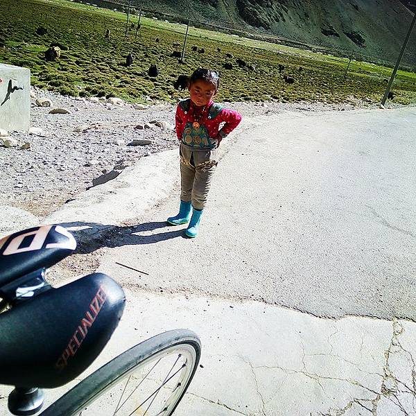 话说用珠穆拉玛峰流下来的雪水加持过的车会不会涨功率啊!休息的时候这个小朋友就一直在旁边看着!好奇又充满警惕!问她什么都不回答!我这种车在这地方出现的确稀奇!