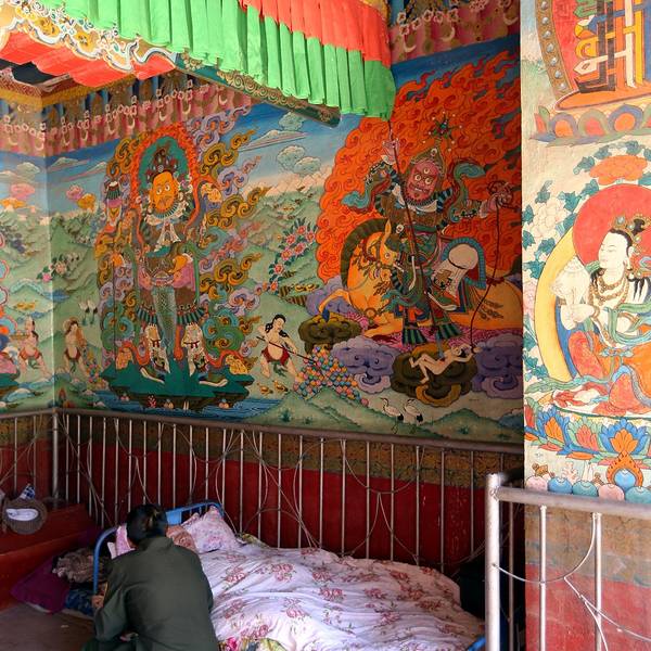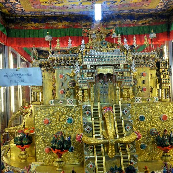 金骆驼 寺庙里面还有很多密集的五彩斑斓的经幡,这些经幡都很新,看起来换得非常勤快。