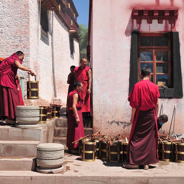弥漫酥油味道的大院,是这里最特别的地方,人们在这里享受这一种神圣沐浴弥漫酥油味道的大院,是这里最特别的地方,人们在这里享受这一种神圣沐浴。这里是最出名的寺庙了,大家来的人也比较多,就是为了他的神秘与出名。