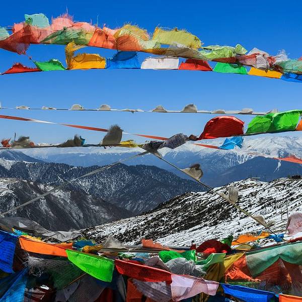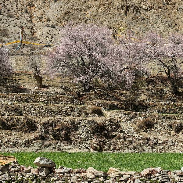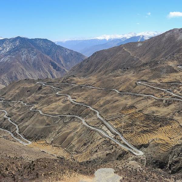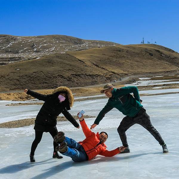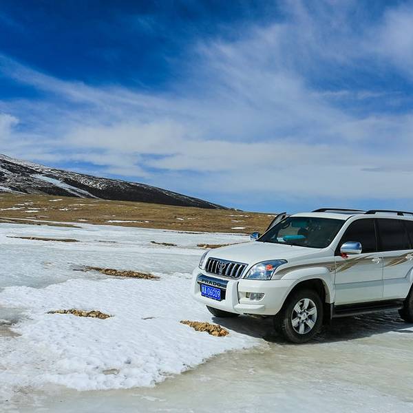 于是跟着阿佳拜了一圈佛。而后从百人喇嘛丛中淡然地退了出来。强巴林寺刚入大门看到的几座大殿都很有意思,在洛隆扎仓里全是坛城,黄金白银配上珊瑚绿松,一座座打造出来的坛城。而吉姆拉康供奉着康区最大的强巴佛佛像。绕着顺时针走,寺庙里面还有许多仓库、僧舍,边上还有个印经院。出了昌都市区没多远,我们发现了一片冰原,直接将越野车开了上去。下来以后大家在那拍照,玩耍,不免在冰上摔了几跤,那疼得哟!不管这样的冰雪世界条件是如何的艰辛,这样白雪皑皑的景色才是最最吸引我的。已经记不清这是我们爬的第几座高山了,今天迎来的是4658米的业拉山口,嗯,著名的怒江七十二拐要到了。这个时候,海拔只剩一个数字了,这几天来几乎已经完全适应了高海拔的缺氧,大家都活蹦乱跳的。朱大哥车技了得,三下五除二地将这七十二拐给过了,山下就快到八宿了。这一片山谷似乎比较暖和,这里的桃花已经开了,这意味着我们的目的地,林芝,就快到了。到达八宿还很早,可整个县城都在修建道路中,就没有太多的心思再出去逛逛走走。已经是这趟川藏之旅的第六天了,我们的行程过了一半,接下来是满心期待的桃花沟。晚饭过后,我们凑在一起聊天、玩牌,朱大哥突然过来说现在前方最新情报,波密的桃花沟还没有开花,啊!听到这个消息我的心凉了一半,来来来,青稞酒喝起来。反正,人生便是如此。