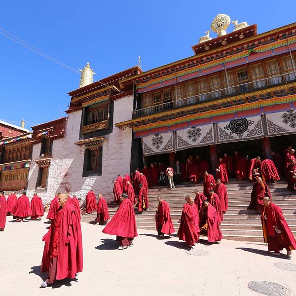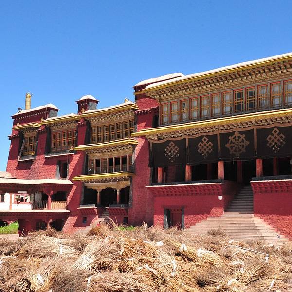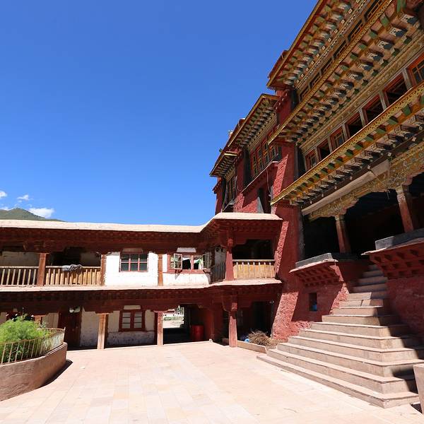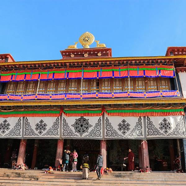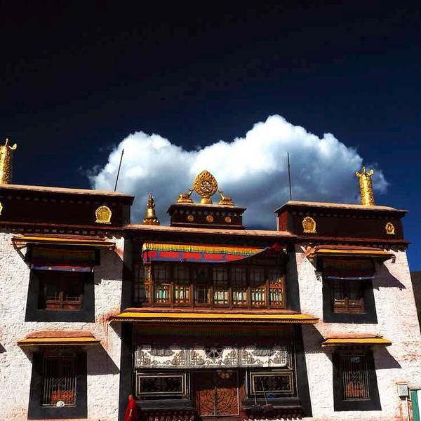 强巴林寺是可以免费参观的强巴林寺是格鲁派最大的庙宇,也是自进入昌都以来,见过虔诚者最多的寺庙,强巴林寺在海拔三千多米,因为周围都是绿色植被,所以高反没那么严重。刚刚看到强巴林寺的时候,寺庙的颜色非常显眼,以红色为主,白色...强巴林寺是格鲁派最大的庙宇,也是自进入昌都以来,见过虔诚者最多的寺庙,强巴林寺在海拔三千多米,因为周围都是绿色植被,所以高反没那么严重。刚刚看到强巴林寺的时候,寺庙的颜色非常显眼,以红色为主,白色为点缀,红的颜色非常浓,也许没有任何一种红,能够彰显出这个寺庙的壮观。因为进到里面后无论是人群还是强巴林寺的内饰都让人瞠目结舌,主殿内有很多跪着的,前来祈福的藏人,从他们的眼神都能看得出多么的虔诚。进入殿内都需要脱下鞋,里面非常干净,简直是一尘不染,就连地板也诶擦的非常闪亮。寺庙内饰有点像印度的皇宫,金碧辉煌的,中间有个大的金色物体非常显眼,里面有很多佛的雕像,还有殿内的壁画,颜色非常鲜艳,保存得非常好。寺庙内的佛雕不计其数,各个度栩栩如生,这里不像其他寺庙供奉香火给零钱,这里佛像的箱子放得最多的就是百元大钞。寺庙里面还有很多密集的五彩斑斓的经幡,这些经幡都很新,看起来换得非常勤快。除了这些还有一些唐卡画,多的不计其数,唐卡画很多还镶嵌着珠宝,被挂得高高的,既可以供香客欣赏还能保护不被损坏。认真看过拜过之后出去,其实寺庙外面的风景也是美不胜收,站在门前能看到昌都城的全貌,还能看到山下澜沧江奔流而过,这山定上就是天葬台。但是因为时间原因没有上去看。