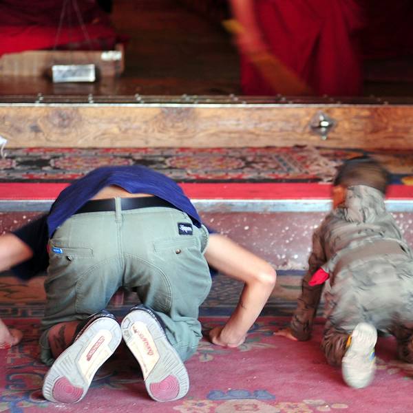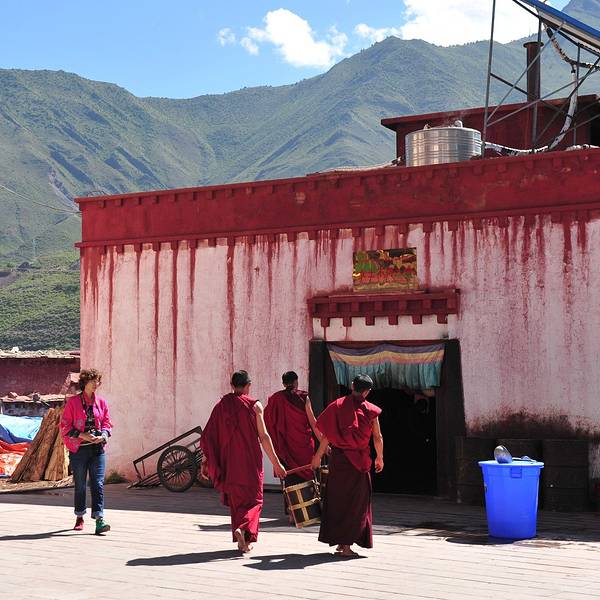 8月1日,前往藏东第一大寺——强巴林寺。给她拍照时,她不好意思地挡住了自己的脸。我只能默默为他祈祷8月1日,前往藏东第一大寺——强巴林寺。