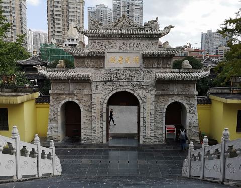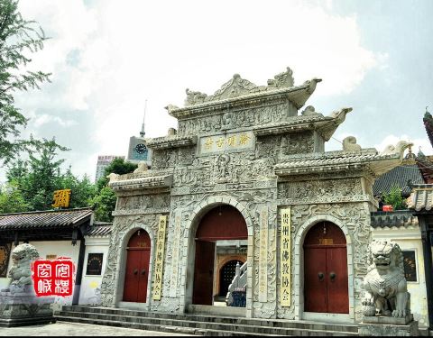 在南明河边的一座千年古寺,香客众多,因为来晚了已经关门未能进入,但寺门的宏伟已让人惊叹。