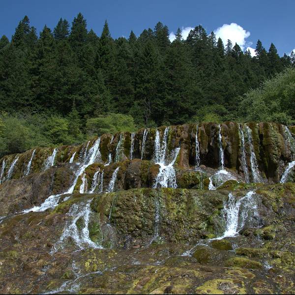 金骆驼 还好去的时候不是枯水期,瀑流泻流而下,看美景季节,天气都很要紧。都是传说而已吧是”金沙铺地“处下泻的瀑流,也是山顶巍巍雪山流下的富含碳酸钙的清澈泉水。“洗身洞”就位于钙华瀑布下部,高1米,宽1.5米,进洞1米处,布满了浅黄色、乳白色钟乳石,洞深不详。经科学考证,该洞原为亿万年前古... 是”金沙铺地“处下泻的瀑流,也是山顶巍巍雪山流下的富含碳酸钙的清澈泉水。“洗身洞”就位于钙华瀑布下部,高1米,宽1.5米,进洞1米处,布满了浅黄色、乳白色钟乳石,洞深不详。经科学考证,该洞原为亿万年前古冰川的一个出水口,也确实是世界最大的钙华塌陷壁。除了景区介绍牌上所写的传说是仙人净身的地方,入洞后方可修仙行道。不育妇女入洞洗身可喜得贵子。也还有个另外的说法说隐身于飞流直下的瀑布中的洗身洞,因以往香客去黄龙寺皆要在此淋浴净身,故而得名。都是传说而已吧。洞本身小巧玲珑,洞内石笋、石钟乳千姿百态,且掩映在如纱似绢的瀑布之中。还好去的时候不是枯水期,瀑流泻流而下,看美景季节,天气都很要紧。 展开