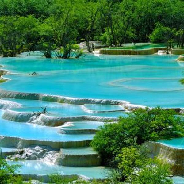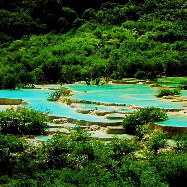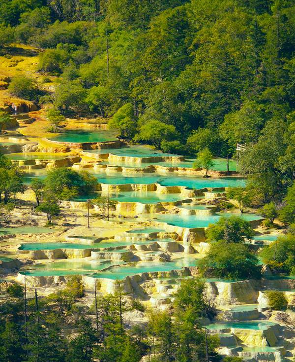海拔3120米,池面积9600平方米,由350多个结构精巧,形状奇特的彩池组成