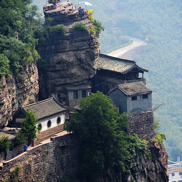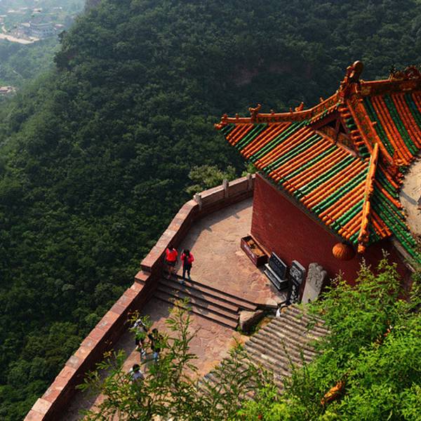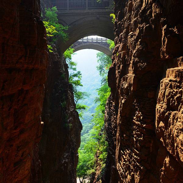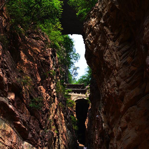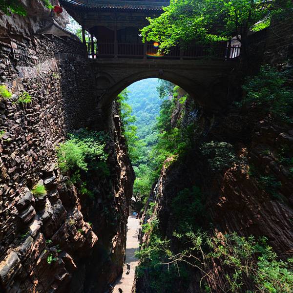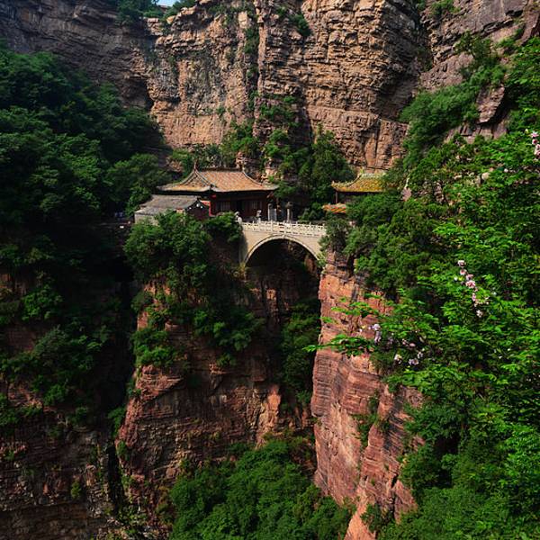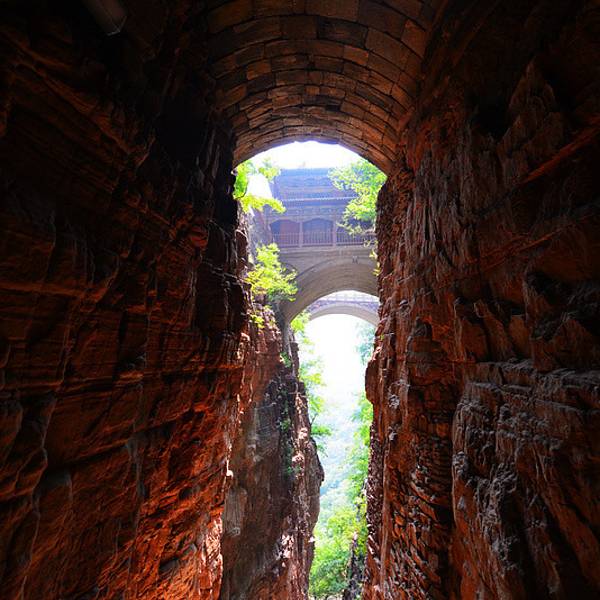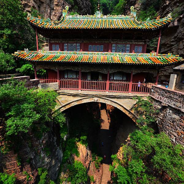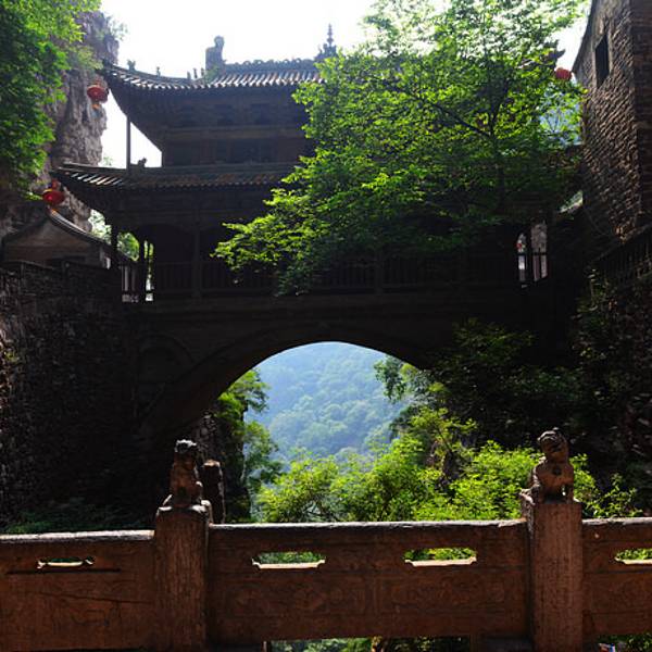 苍岩山位于河北省石家庄市西南45公里,地处井陉县南部的太行山麓。苍岩山群峰巍峨,怪石嶙峋,深涧幽谷,古树名木,清泉碧湖,构成了奇特、幽静、秀丽的自然景观。千年古刹福庆寺历史悠久、构造奇异、气势壮观使之享有“五岳奇秀揽一山,太行群峰唯苍岩”之美誉。最著名的桥楼殿,就是李安的《卧虎藏龙》中玉娇龙跳崖之地,桥楼殿建于隋代,横跨高崖之上,极为险峻壮观,也是中国三大悬空寺之一。苍岩山景观丰富多彩,众美为一体的独特风格吸引了无数海内外游客前来旅游观光,吟诗作画,拍摄影视外景。除《卧虎藏龙》外,《西游记》、《乙未豪客传奇》、《白龙剑》、《木乃伊3》、《鸡毛信》、《大国医》、《破袭战》、《花木兰》等许多影视镜头都在这里拍摄。照片拍摄于2013年7月7日河北苍岩山