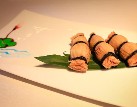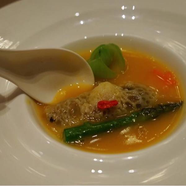 春季私房菜,味蕾新体验,从头盘到甜品满满的味蕾惊喜。龙趸鱼肉玉兰竹笙虫草花羹:每一口咬下去从耳根都能感受到爽脆,山药配合竹笙虫草,一口汤带来三种层次感。创意菜鲍鱼栗子鸡肉芝麻包中包,三次加工的功夫创意菜,包中有包