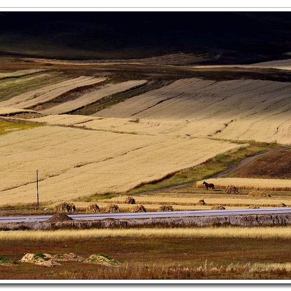 下图有一张,破败萧条的冬季里的小棚子,那是在旺季里供游客休息的茶棚:柴火烧的热水现沏,5块钱管够...冬季的情人谷,冷!冷的扎手扎脸。我在车下仅仅录了几个镜头,呆了几分钟,太阳一下山,马上人就受不了了。