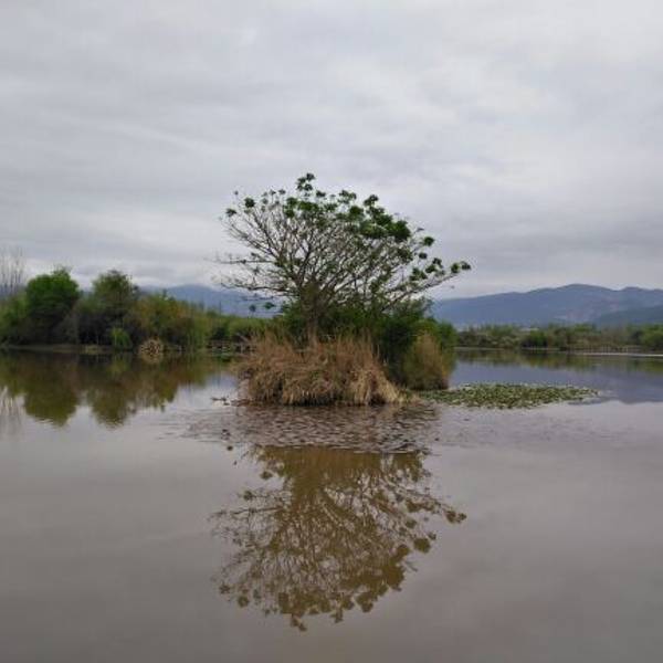 虽时间已晚,我们仍流连风景,难以加快步伐。这一处,是叫做”五棵树“的小景点。邛海的景太适合人像了午后沿邛海边步行回客栈。周长38公里的邛海,我至今未能走遍。但走过的时候总有些奇景。